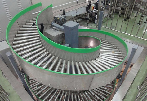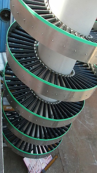 螺旋滾筒輸送機(jī)又稱為螺旋降箱機(jī),通過將機(jī)架制作成螺旋狀,一般為無動(dòng)力結(jié)構(gòu),可用于輸送量較大的紙箱、袋裝產(chǎn)品的連續(xù)式下降輸送;