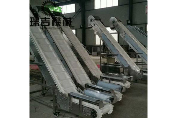 Z型爬坡皮帶輸送機(jī)是輸送機(jī)的一種,其機(jī)架形狀為Z型故而得名,輸送載體采用鏈板時(shí),輸送鏈板沖壓成型,鏈板寬度可以根據(jù)客戶(hù)需求定制,兩側(cè)輸送鏈條節(jié)距由25.4-100可選,鏈板運(yùn)行在非標(biāo)制作的導(dǎo)軌中,具有運(yùn)行平穩(wěn)、負(fù)載力強(qiáng)、耐油等優(yōu)點(diǎn),輸送載體采用皮帶時(shí),底部采用鏈條傳動(dòng),設(shè)備寬度可以達(dá)到1500mm,裙邊式皮帶解決了漏料、撒料等弊端;機(jī)架采用板材或型材非標(biāo)制作,導(dǎo)軌采用型材制作,采用迷宮式結(jié)構(gòu)密封,確保輸送過(guò)程中細(xì)小物料無(wú)法卡滯輸送帶的關(guān)節(jié),輸送物料最小可以達(dá)到0.5mm,動(dòng)力采用臥式馬達(dá),線速度變頻調(diào)速(可選),線速度可達(dá)30米/分鐘。是塑料顆粒、沖壓零件、邊角料、小零件、緊固件等細(xì)小顆粒狀物料輸送的。
