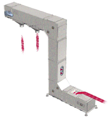 斗式Z型提升機(jī)是我司設(shè)計(jì)制作的斗式提升機(jī)系列產(chǎn)品中的一種,根據(jù)進(jìn)、出料口位置的不同而型似字母Z字得名;設(shè)備采用封閉式結(jié)構(gòu),避免了跑冒滴漏的生產(chǎn)缺陷,通過(guò)在兩側(cè)閉環(huán)鏈條上安裝料斗,使得料斗能夠在任意位置隨意設(shè)定旋轉(zhuǎn)位置;可以在任意位置滿(mǎn)足多點(diǎn)卸料的要求,既可以提升顆粒及小塊狀物料,也可以提升含粉量低于25%的混合型物料,提升高度可以達(dá)到20米,提升量15立方/小時(shí);新款Z型斗式提升機(jī)料斗采用了較老款料斗更加柔性化的設(shè)計(jì),全程超高分子導(dǎo)軌及鏈條摩擦塊,在提升高度較高時(shí)配備了逆止裝置及電子檢測(cè)裝置、斷鏈保護(hù)裝置、鏈條自動(dòng)張緊裝置,使得設(shè)備性能可靠性得到了提升;鏈條采用了具有較高強(qiáng)度的輥?zhàn)渔?,在料斗的尺寸上延續(xù)了我們的PP塑料料斗的特點(diǎn),料斗容積有3L和8L可選;我們可以結(jié)合腐蝕、高溫等要求,可非標(biāo)定制碳鋼、不銹鋼等金屬料斗,目前我司生產(chǎn)的Z型斗式提升機(jī)在化工、塑料、糧食、寵物食品、膨化食品、休閑食品、再生資源、五金、化工等行業(yè)得到了廣泛的應(yīng)用;