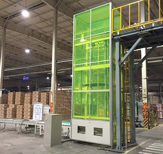 連續(xù)式托盤(pán)Z型提升機(jī)的叫法主要是根據(jù)輸送形式為垂直提升而得名,又稱(chēng)為:連續(xù)式托盤(pán)提升機(jī),托盤(pán)式垂直提升機(jī),由設(shè)備框架、傳動(dòng)軸、鏈輪、傳動(dòng)鏈條及組合式托盤(pán)、承載鏈條等組成,全程采用該分子耐磨導(dǎo)軌導(dǎo)向,具有占地面積小、提升速度快、噪音低、安全等特點(diǎn);垂直提升機(jī)主要應(yīng)用于紙箱、塑料周轉(zhuǎn)箱、油桶、棧板等固態(tài)元件的垂直提升輸送;按照進(jìn)料口出料口的方向分為Z型垂直提升機(jī)和C型垂直提升機(jī)兩種。 Z型出入口分別位于設(shè)備的兩邊,C型垂直提升機(jī)的出入口位于同一側(cè);Z型相比較C型垂直提升機(jī)來(lái)講,提升量相對(duì)會(huì)大一些,Z型的提升速度可達(dá)20件/分鐘,C型可達(dá)10件/分鐘,具體速度需要根據(jù)物體尺寸確認(rèn);提升高度可達(dá)15米,單件物品的提升重量可達(dá)150KG;